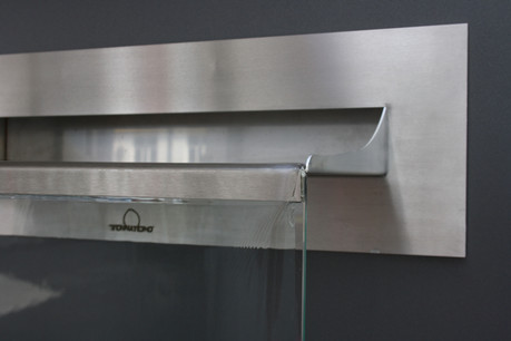 To create a calm and even water flow, we recommend to install a water flow zone made of special safety glass. To name just a few advantages of the watercourse zone: the noise level is pleasantly reduced; the water always runs back evenly into the pool; no drifting of the water curtain and no water loss due to wind.
